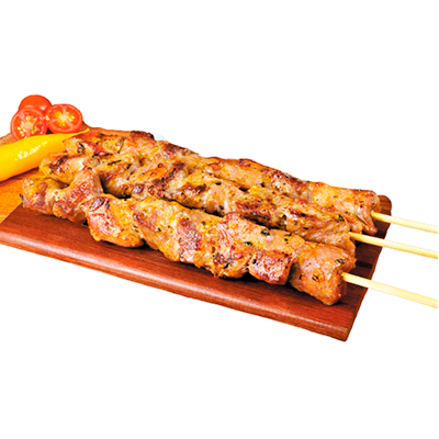 Espeto costelinha suina com barbecue Com um molho alho ou pimenta