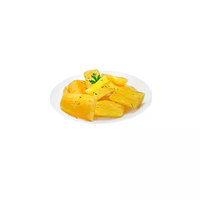 Mandioca, vinagrete, farofa Com molho de alho e pimenta